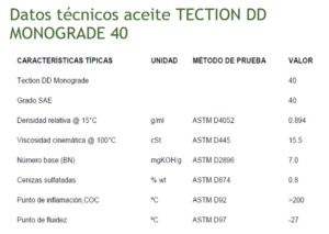 Tection DD Monograde 40 cumple las especificaciones API CF2. El contenido de cenizas sulfatadas cumple con el máximo de 0.8 % que requieren los motores Detroit Diésel de la serie 149.